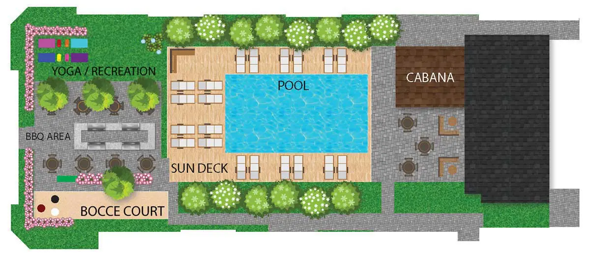 The luxury lifestyle enjoyed by residents of The Edge at Raritan Heights does not end at the entrance to the building. Outside, you will find outdoor amenities that simply can not be found at other New Jersey luxury apartment communities. From the sparkling resort-style pool with cabana to barbecue grills and numerous outdoor gaming and recreation areas, luxury living extends to the great outdoors at The Edge! Explore our courtyards below.